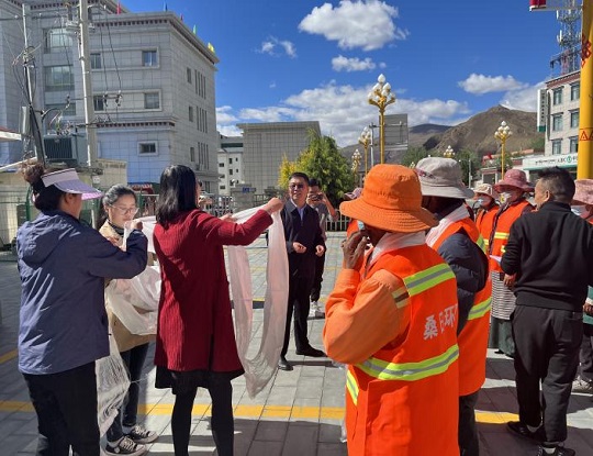 國策環(huán)保桑日項(xiàng)目部經(jīng)理頓珠次仁發(fā)言表示感謝黨,感謝縣委、縣政府的領(lǐng)導(dǎo)對環(huán)衛(wèi)人員的關(guān)心與關(guān)愛,使我們的一線員工在休息時(shí)間有一個(gè)喝水吃飯的地方。