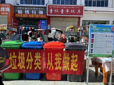 國策環(huán)保山南分公司相關工作人員在現場為大家解答了垃圾分類的相關問題,給大家普及了垃圾分類知識并現場指導垃圾分類,呼吁大家從自身做起,積極參與生態(tài)建設和環(huán)境保護工作,以實際行動做好垃圾分類,共建美麗山南。